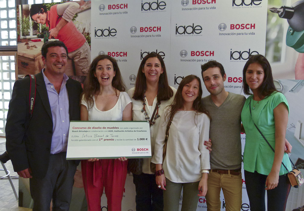 Desde IADE queremos felicitar a todos los alumnos de 2º de Diseño de Interiores que han participado por su espíritu de colaboración, a los 5 finalistas y a sus familiares y amigos, el esfuerzo y horas de trabajo empleados no sólo en el diseño de los muebles, sino en su posterior realización que sabemos que no ha sido fácil, y especialmente agradecer a Bosch Bricolaje, a la agencia de comunicación Burson-Marsteller y al Colegio Oficial de Arquitectos de Madrid su apoyo y colaboración en este proyecto, que sin ellos no hubiera sido posible.